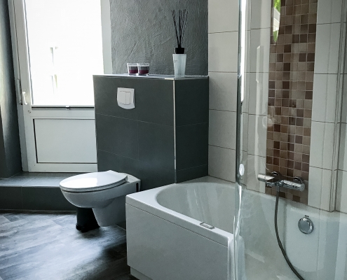 Highlight ist das große Badezimmer mit Wellnessnote.