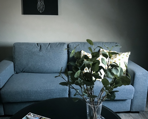 Unsere 37qm2 große Ferienwohnung mit solider Ausstattung. Die kleine Kochzeile verfügt trotz der Größe über alles was gebraucht wird. Klein aber fein!