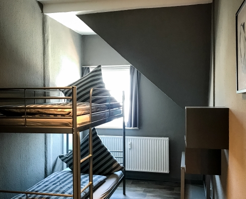 Etagenbetten und eine großé Doppelschlafcouch sorgen für entspannten Schlaf.